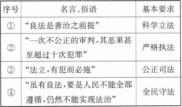 5. 下列名言、俗语与全面推进依法治国基本要求对应正确的是( )