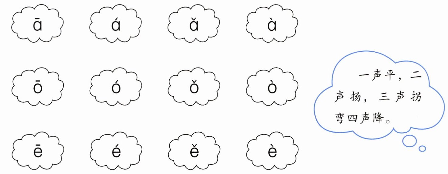 根据实际听到的带调字母来完成涂色哦。比如如果听到的是“ā”,就给第一行第一个“ā”涂色;听到“ó”,就给第二行第二个“ó”涂色,以此类推。