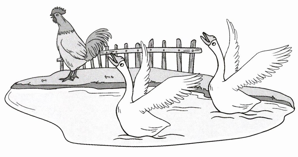 文文参观农场后画了一幅画。看图,跟着老师读一读,写字母。