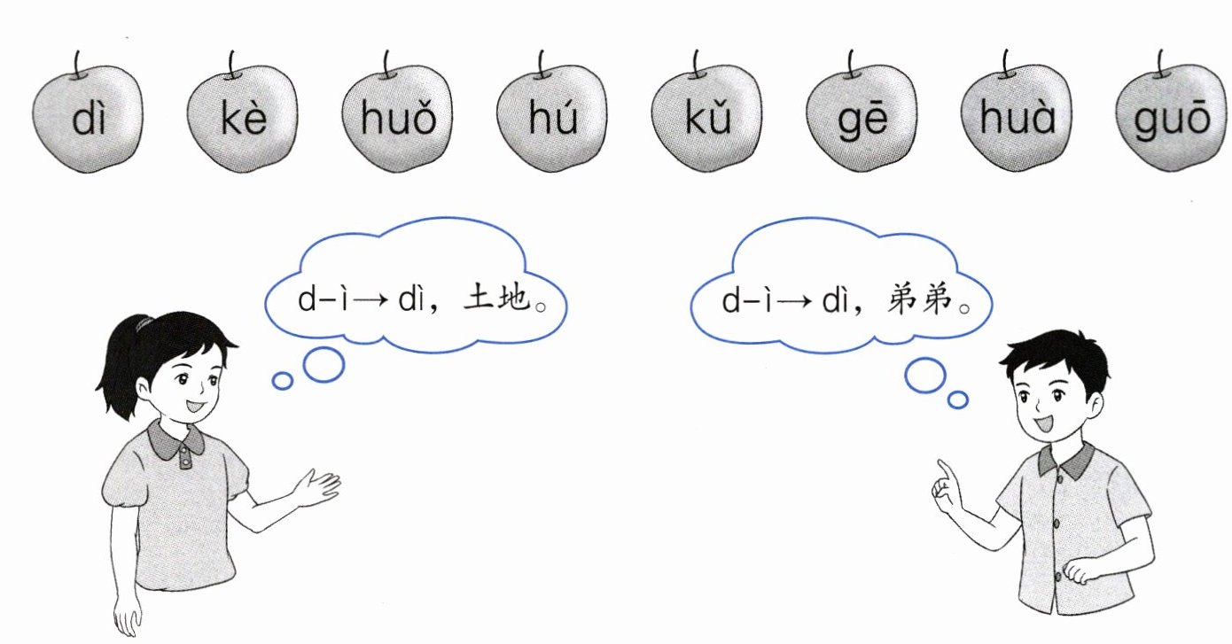 综上,答案依次为:$\boldsymbol{k - è \to kè}$,**上课**;$\boldsymbol{h - u - ǒ \to huǒ}$,**大火**;$\boldsymbol{h - ú \to hú}$,**二胡**;$\boldsymbol{k - ǔ \to kǔ}$,**辛苦**;$\boldsymbol{g - ē \to gē}$,**哥哥**;$\boldsymbol{h - u - à \to huà}$,**画画**;$\boldsymbol{g - u - ō \to guō}$,**铁锅** (答案不唯一)。