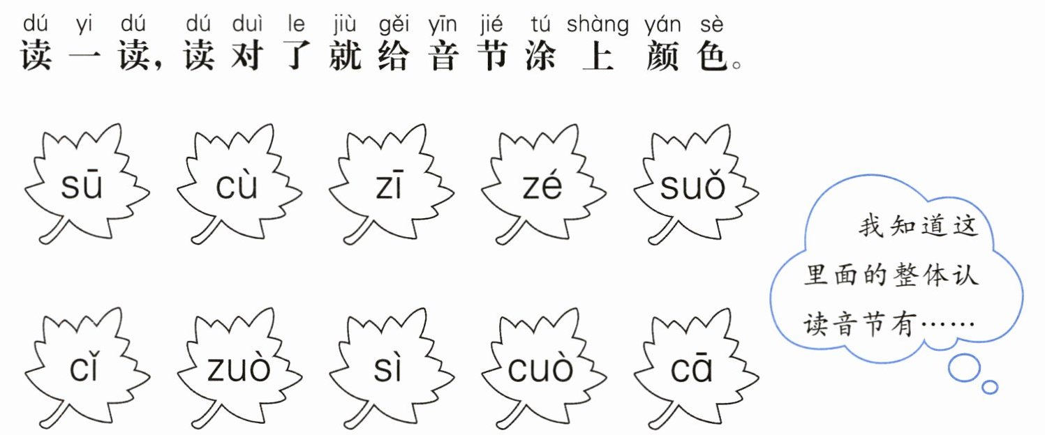 整体认读音节有:$z\bar{i}$、$s\grave{i}$、$c\check{i}$。
