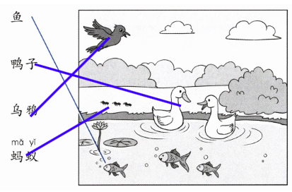 照样子,连一连,说一说。