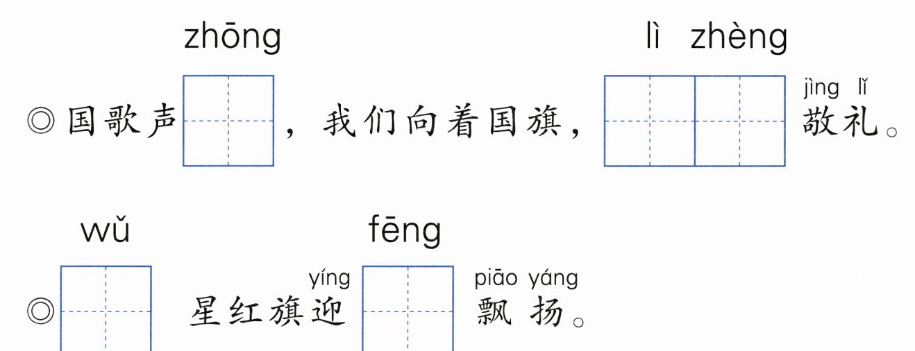 国旗——多么美丽;微风——多么柔和;歌声——多么动听。