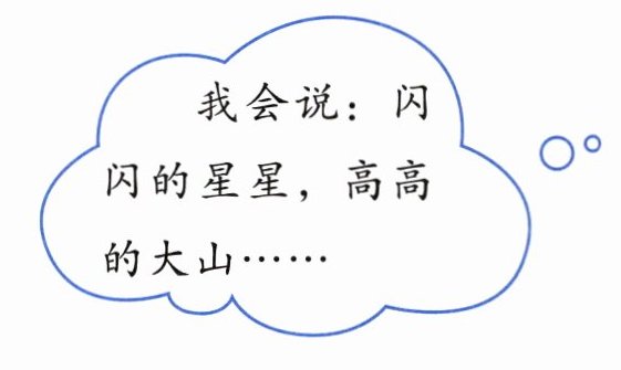 弯弯的—彩虹 红红的—太阳 蓝蓝的—大海 白白的—云朵 我说:弯弯的彩虹,红红的太阳,蓝蓝的大海,白白的云朵。