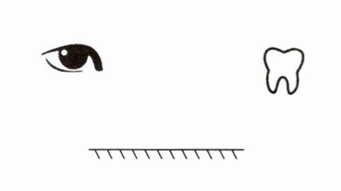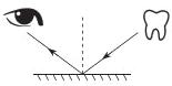很多人会定期对牙齿进行检查。臼齿在口腔的最里面,即便张大嘴巴,也不容易看清楚,医生通常会借助口镜进行检查。下面是医生利用口镜观察牙齿的示意图,请画出光的传播路线。