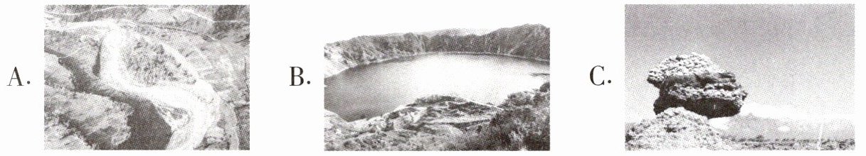 1. 火山会改变地表。下列地形中因为火山喷发形成的是( )。