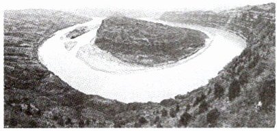 黄河的乾坤湾,凹岸的一侧是陡峭的悬崖,凸岸的一侧是平缓的河滩。