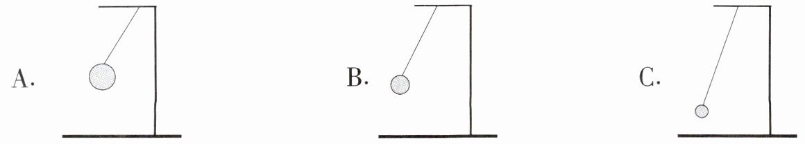 6. 下面是三名同学用不同质量的摆锤、不同长度的绳子制作的摆的示意图,摆动最慢的是( )。