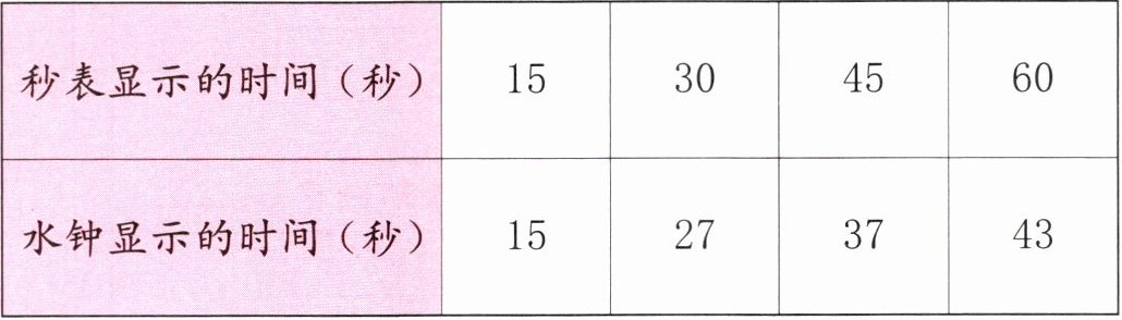 5. 元元在自制水钟内注入一定量的水后停止注水,然后每漏出30毫升水时记录秒表和水钟显示的时间(见下表)。下面说法中不正确的是( )。