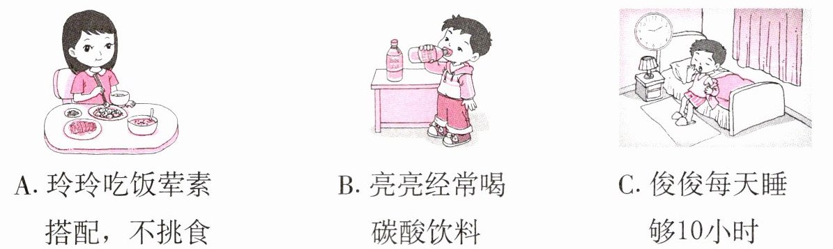 4. 观察下列图中小朋友的生活方式,会影响健康的是( )。