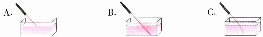 1. 激光笔射出的光透过空气射进水中,下面能准确描述其传播路线的是( )。
