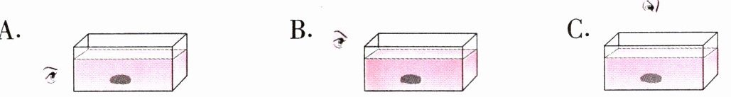 3. 奇奇在一个不透明的碗底部放一枚硬币,把碗移动到眼睛刚好看不到硬币的地方,保持眼睛和碗的位置不变,请妙妙向碗里加水,则下列说法中正确的是( )。