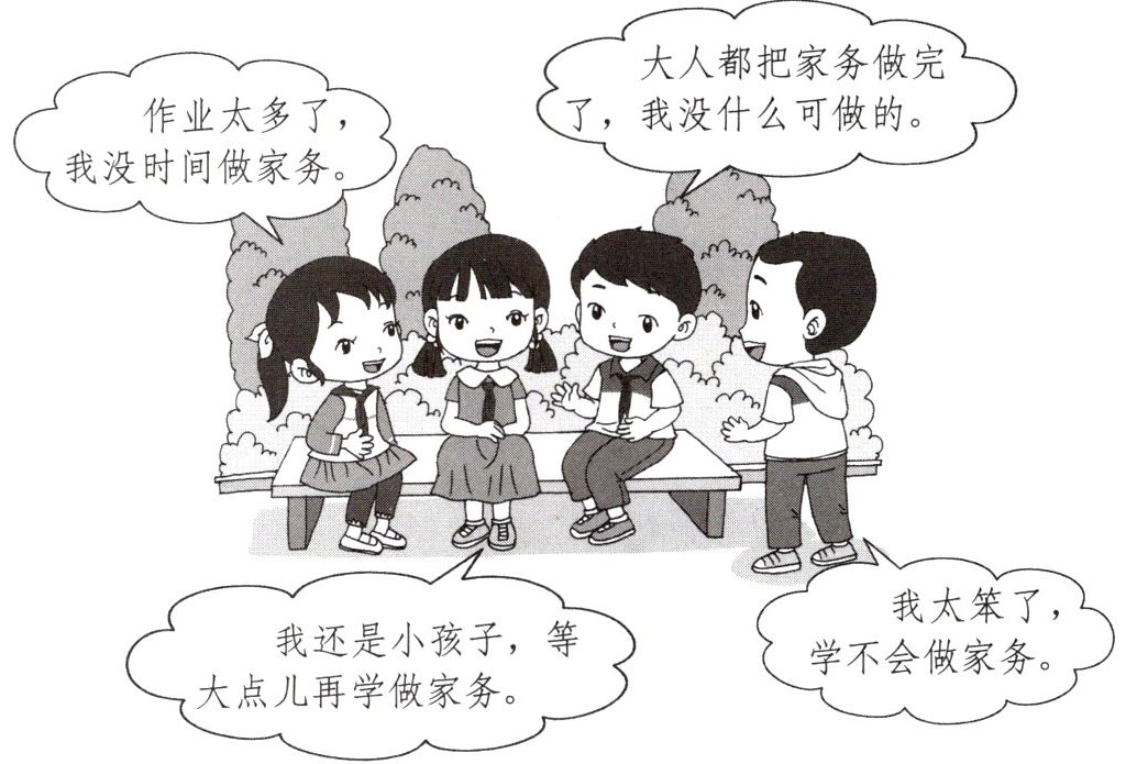 我不赞同这些同学的观点。我想对他们说:做家务有助于我们形成良好的生活习惯和劳动态度,可以增进对父母的理解,提高生活技能,所以我们要积极学做家务,不应该以各种理由逃避做家务。