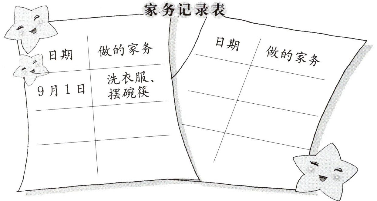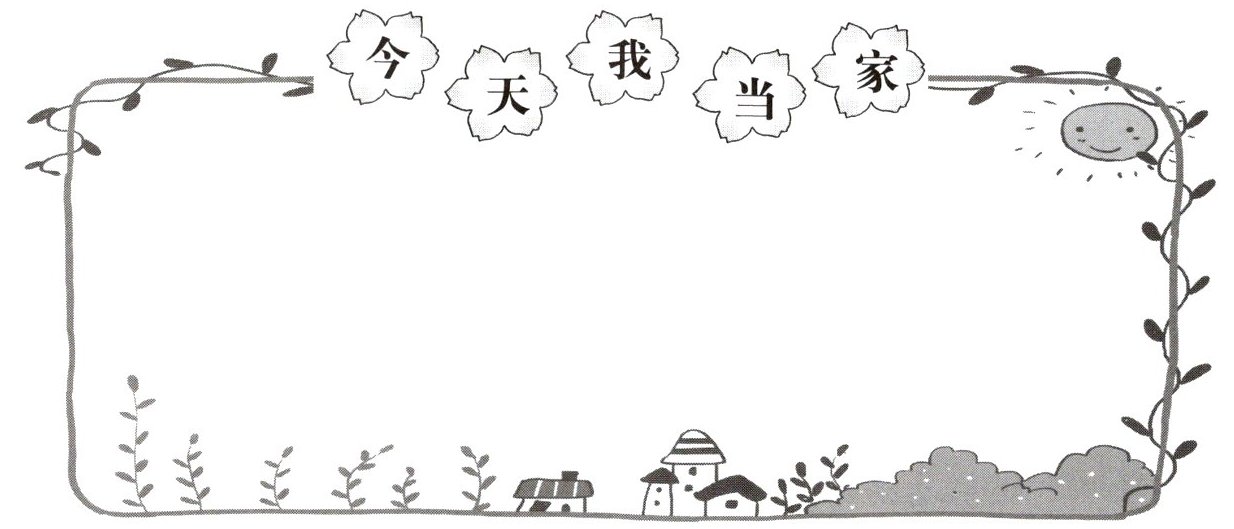 假如今天爸爸妈妈不在家,让你来当一天家,你该怎么做呢?准备完成哪些家务?如何来当好这一天家?动手制订一份计划吧!