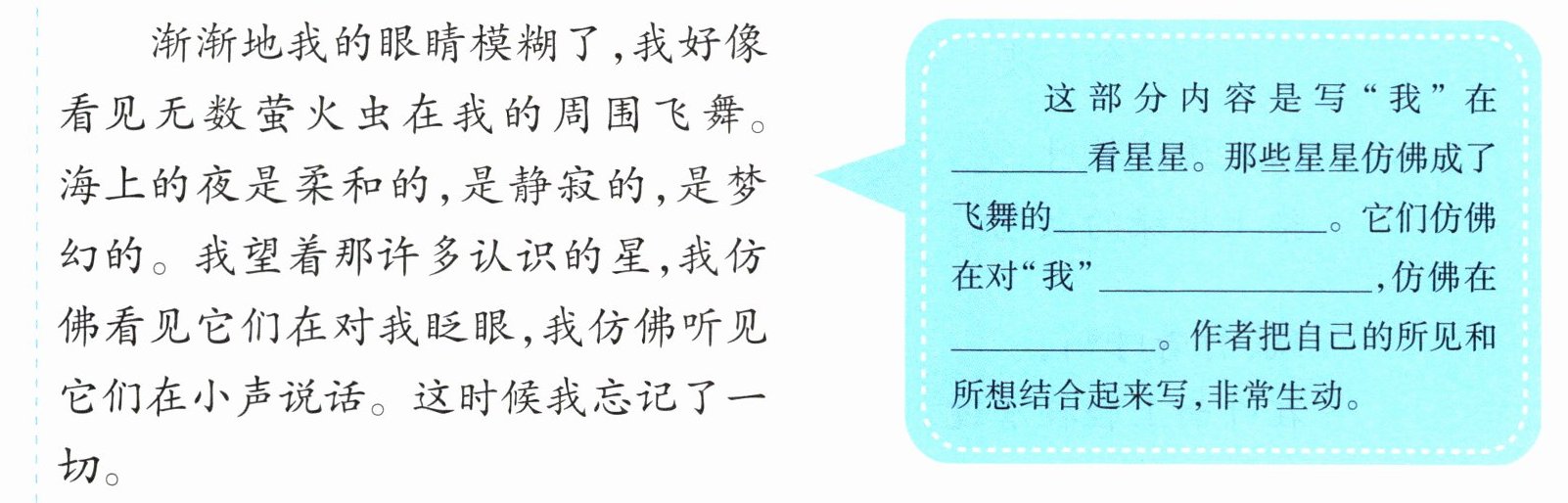 2. 选择晴朗的夜晚,到户外去观察天空,你看到了什么?有怎样的感受?把你的所见所感用几句话写下来。______