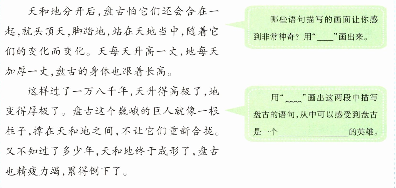 盘古这个巍峨的巨人就像一根柱子,撑在天和地之间,不让它们重新合拢。