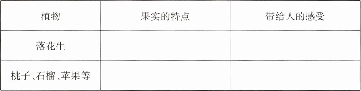 2. 落花生和不同植物的果实有不同的特点,也带给人不同的感受。根据课文内容,选用文中的关键词句填空。