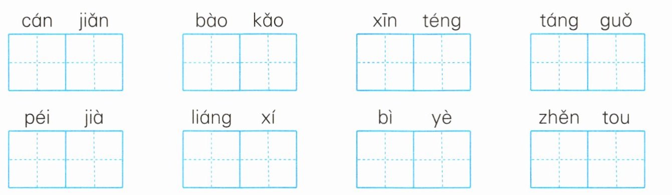 1. 读拼音,写词语,要做到书写正确、规范、整洁。