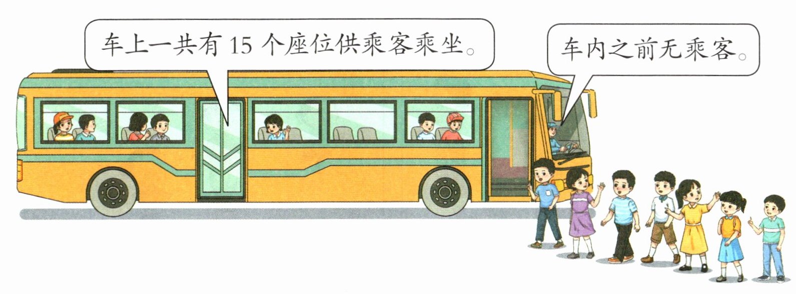 2. 一(1)班7个同学和一(2)班7个同学计划周末去植树,一共有多少个同学?如果都乘坐如图所示的这辆车,能坐得下吗?在括号内打“✔”。