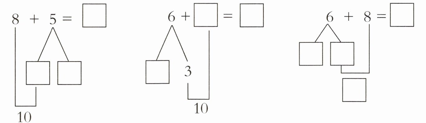 $5+(\quad)= 11$ $7+(\quad)= 13$ $(\quad)+6= 15$