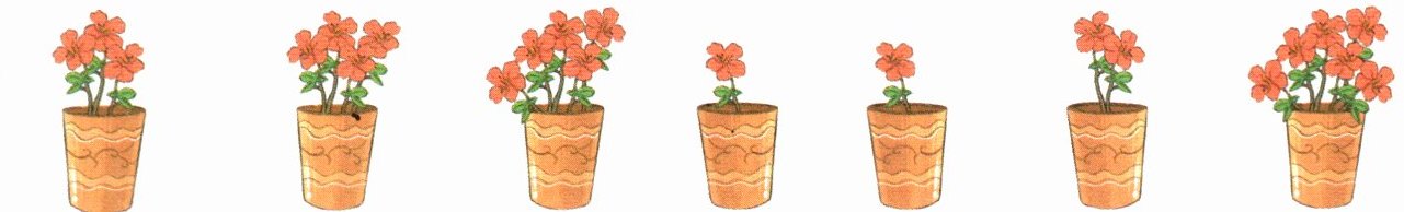 (2)从左边数,第2盆开了( )朵花,与第( )盆中开的花合起来是6朵。