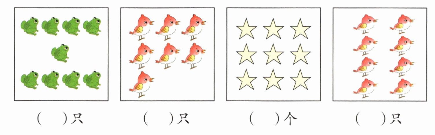 你见过下面的动物吗?它们各有几条腿?数一数,写一写。