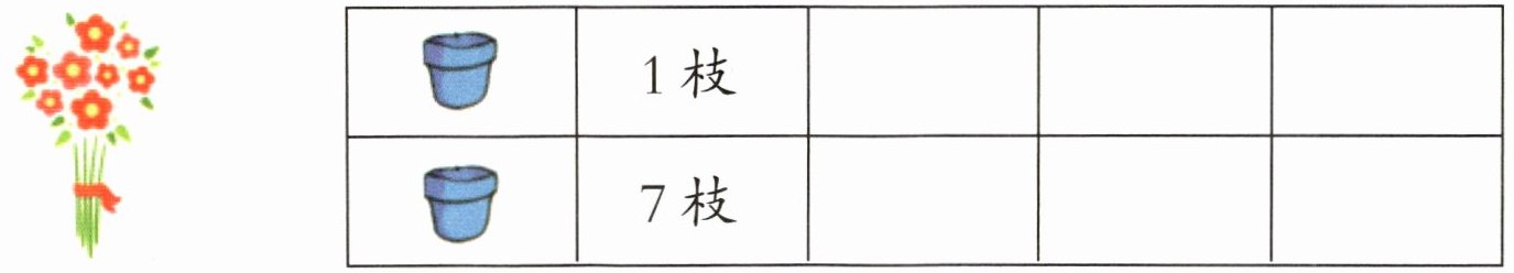 2. 把 8 枝花插在两个花盆里,请你写出不同的插法。