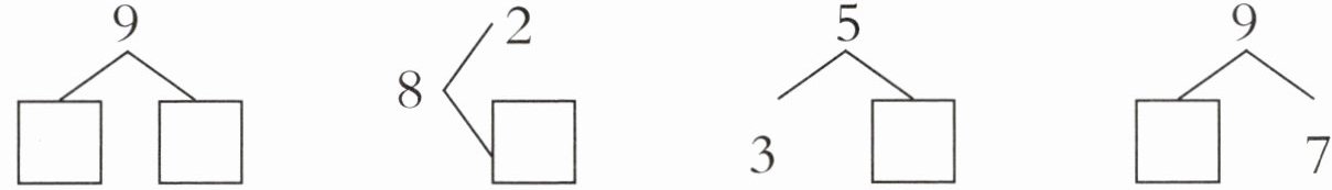 (3)哪两盆花合起来有 9 朵花?连一连。