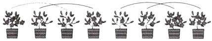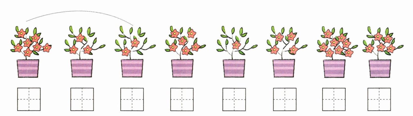 (2)从左边数,有 8 朵小花的是第( )盆。它右边的花盆有( )朵小花。