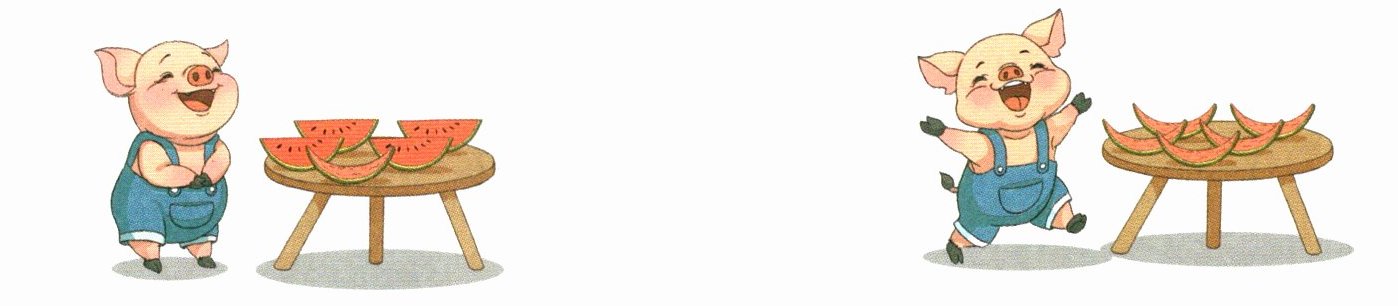 2. 猪宝宝把西瓜都吃了,还有几块?怎么算呢?