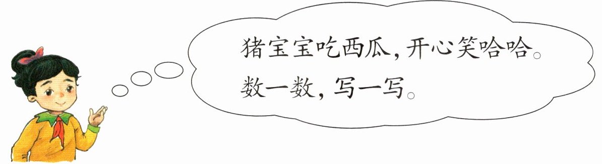 1. 猪宝宝吃了 1 块西瓜,还有几块?