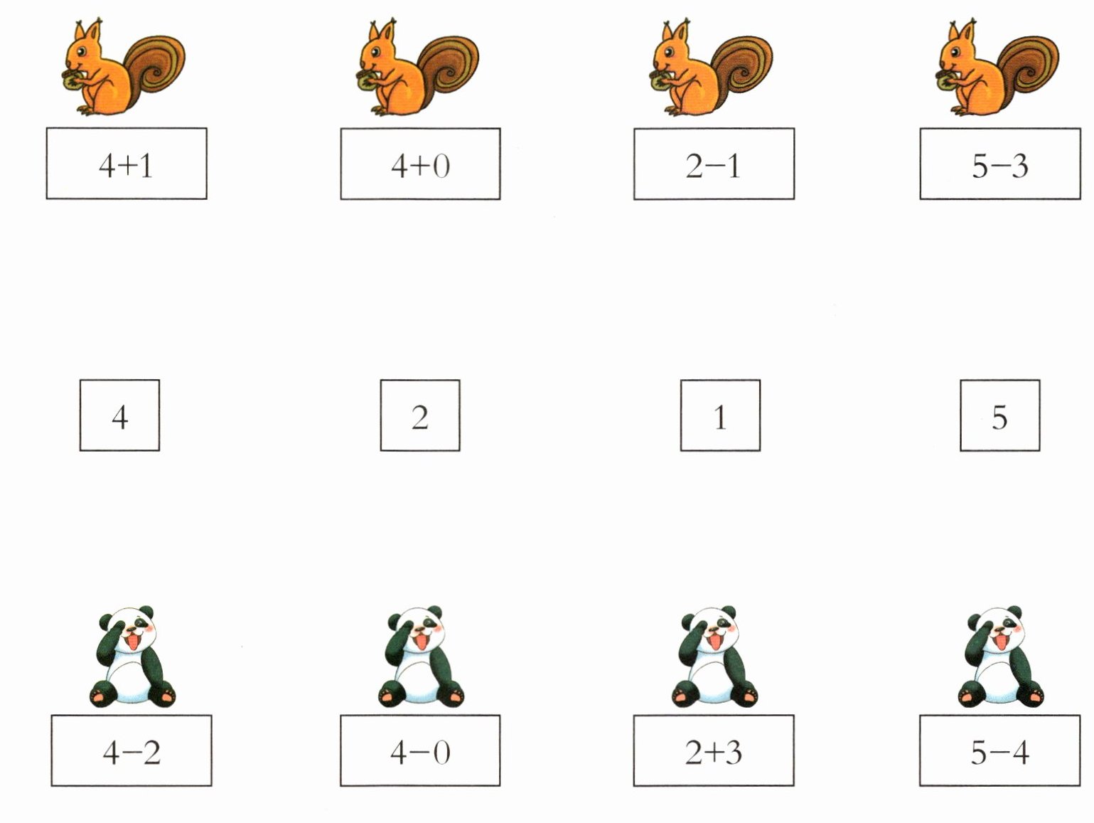 1.帮小松鼠和大熊猫找到正确的得数。算一算,连一连。