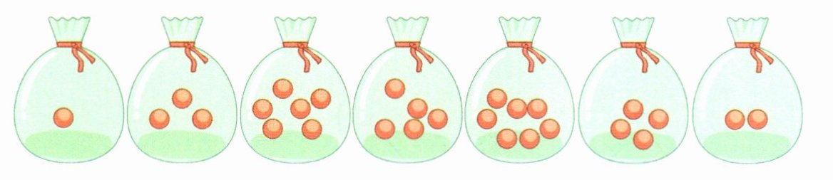 仔细看图,每个袋子里有几个小球?数一数,填一填。