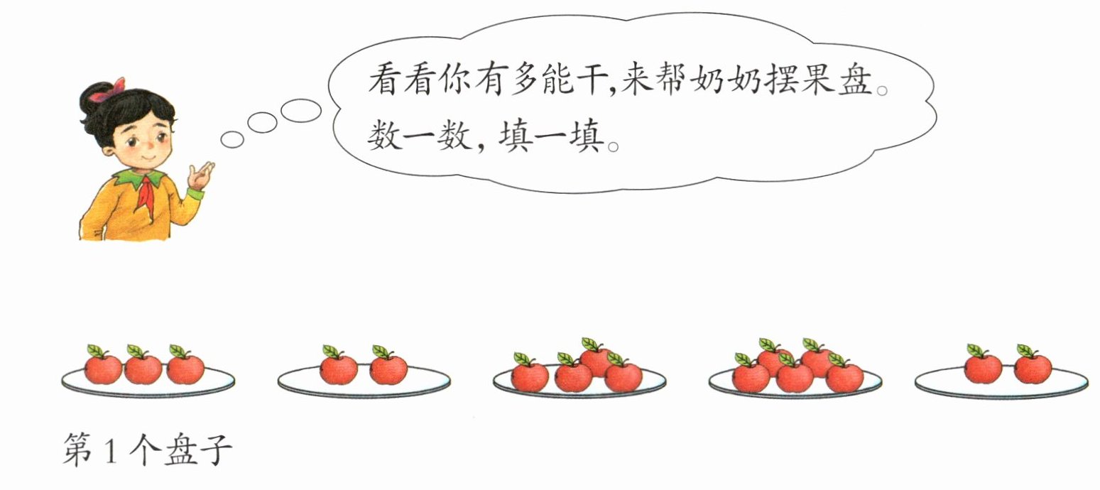 1. 第 3 个盘子里有( )个苹果,第 4 个盘子里有( )个苹果。