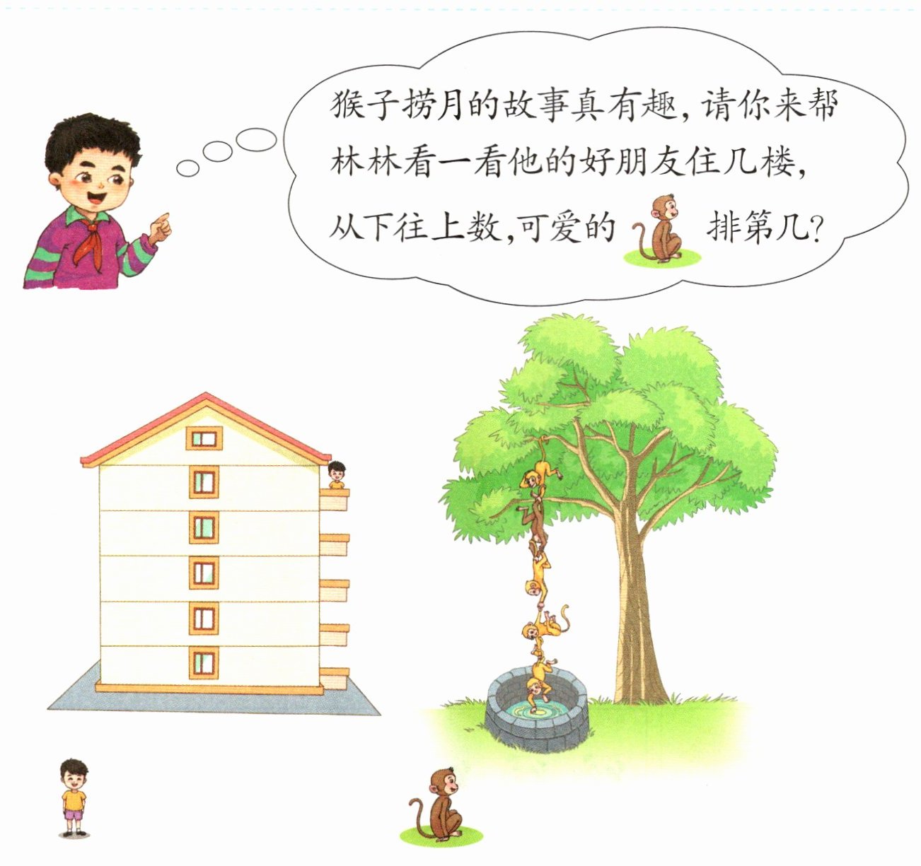 住在第( )层。有( )只猴。从下往上数,