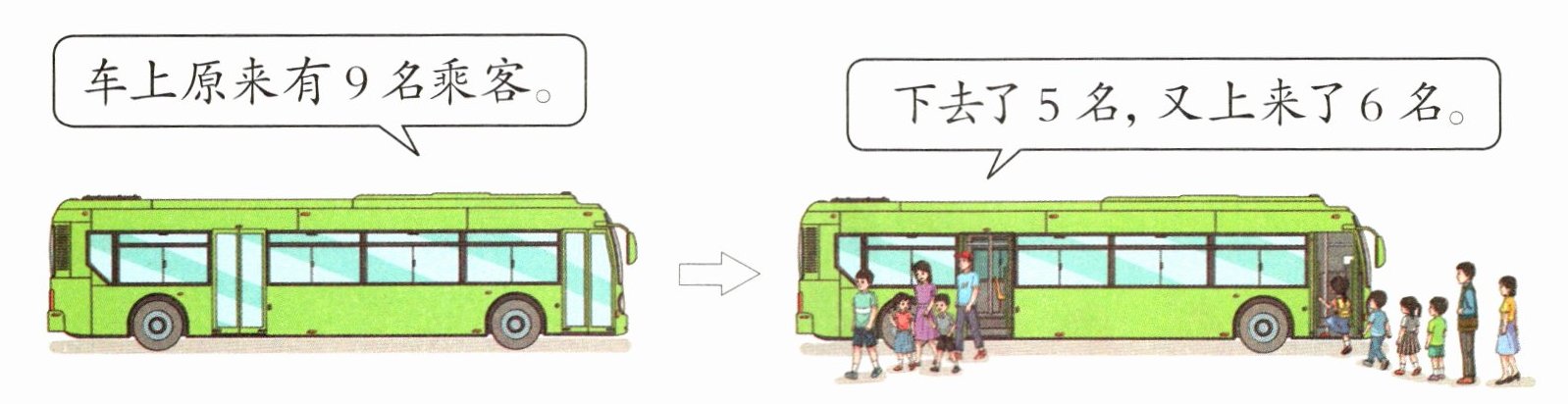 2. 公交车从起点站发车,中途有下车的,也有上车的,现在车上有几名乘客?