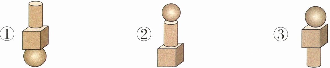 3. 在圆柱下面放一个正方体,在圆柱上面放一个球,搭成的是(