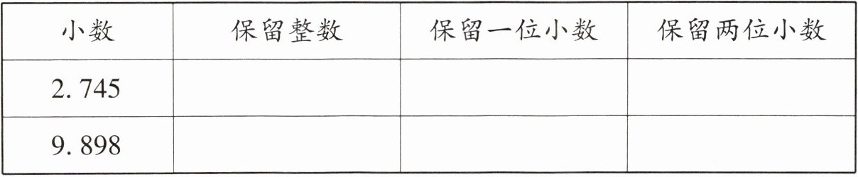6. 按照“四舍五入法”写出下表中各数的近似值。