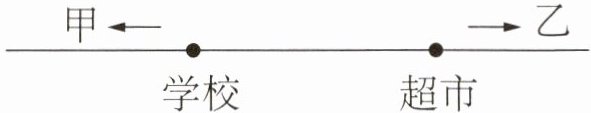 如图,甲每小时行 9 千米,乙每小时行 7 千米。甲从学校向左行,同时乙从超市向右行,经过 3 小时后,两人相隔 60 千米。学校和超市相距多少千米?