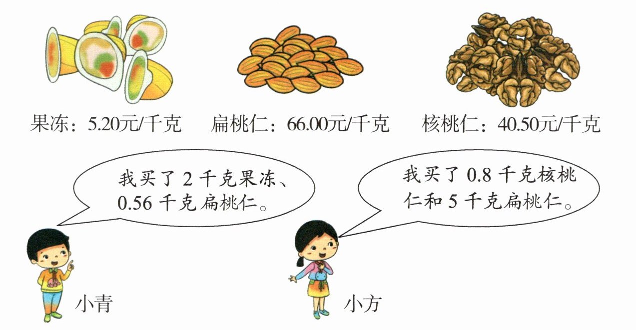 (1)小青买这两种食品用了多少钱?