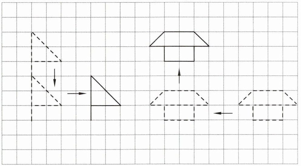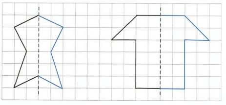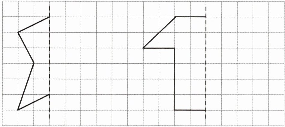 2. 画出下面图形的另一半,使它们成为轴对称图形。
