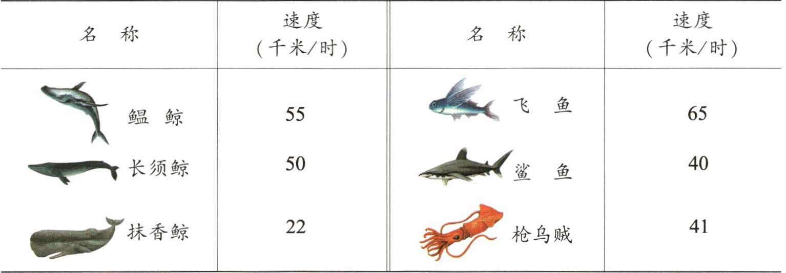 (1) 飞鱼的速度是长须鲸的多少倍?(答题空)