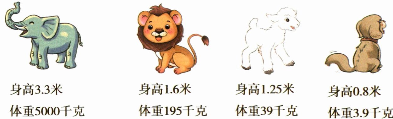 (3)示例:一只羊的体重相当于多少只狗的体重?39÷3.9=10(只)