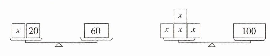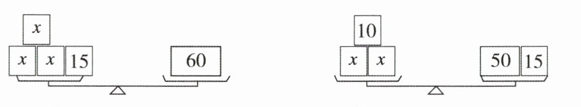 x + 20 = 60 4x = 100 3x + 15 = 60 2x + 10 = 50 + 15