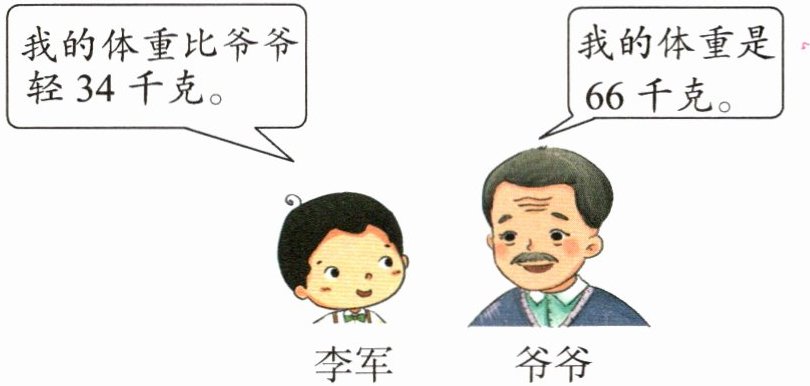 3. 李军的体重是$x$千克,用方程计算出李军的体重。