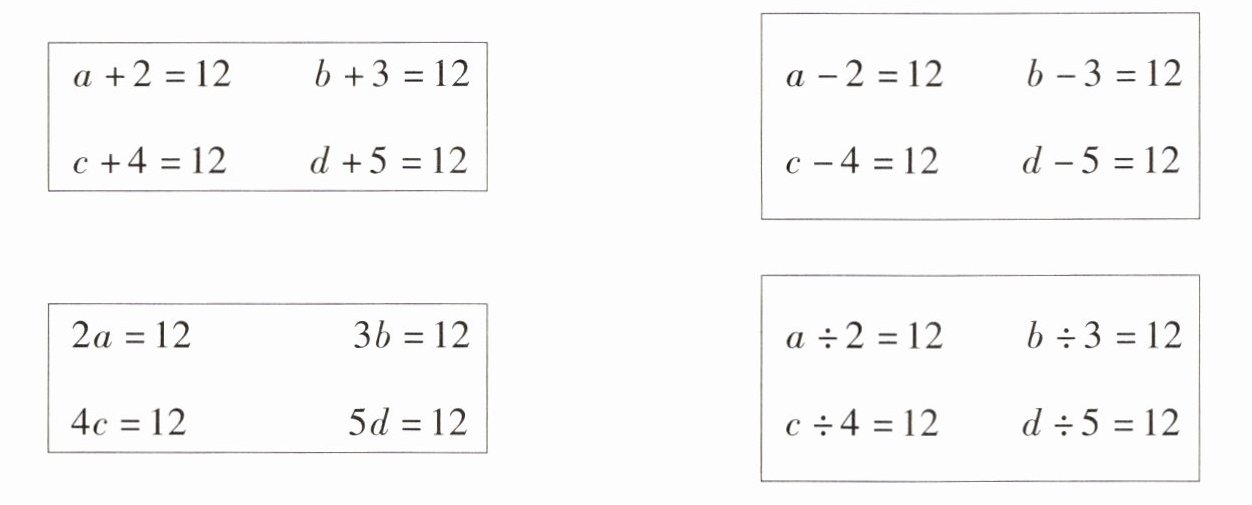 2. 下列哪些式子是方程?哪些式子是等式?请将序号填入相应的圆圈内。