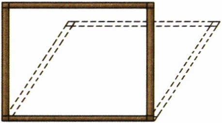 用木条做一个长方形木框,长 16 厘米,宽 14 厘米,它的周长和面积各是多少?如果把它拉成一个平行四边形,那么周长和面积各会怎样呢?