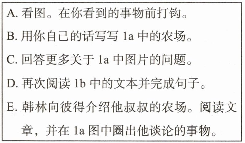 )2. Han Lin introduces his uncle’s farm to Peter. Read the text and circle the things he talks about in the picture in 1a. (