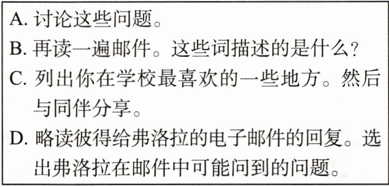 ) 2. Skim Peter’s reply to Flora’s email. Choose the question Flora probably asked in her last email.(