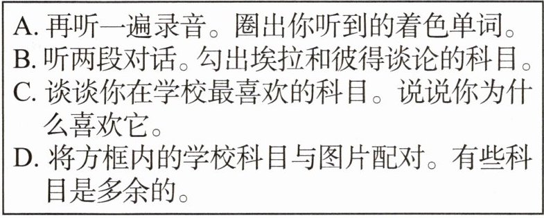 六、熟悉教材指令。扫码听或请教老师,学会朗读;再与正确的中文意思匹配起来。